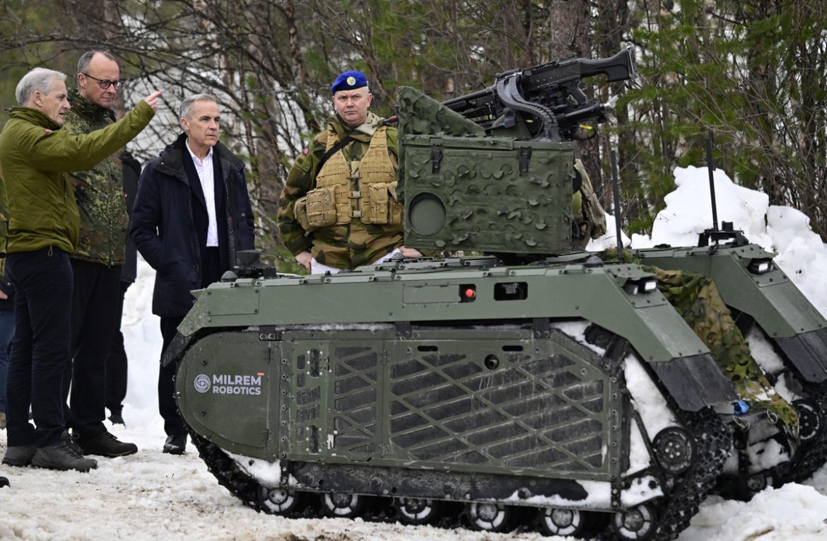 La o conferință de presă comună desfășurată la Bardufoss, Norvegia, în cadrul exercițiului NATO „Cold Response” la care participau 14 națiuni, Carney, prim-ministrul norvegian Jonas Gahr Støre și cancelarul german Friedrich Merz au subliniat că relaxarea sancțiunilor ar slăbi eforturile de a forța Rusia să negocieze încetarea războiului din Ucraina.